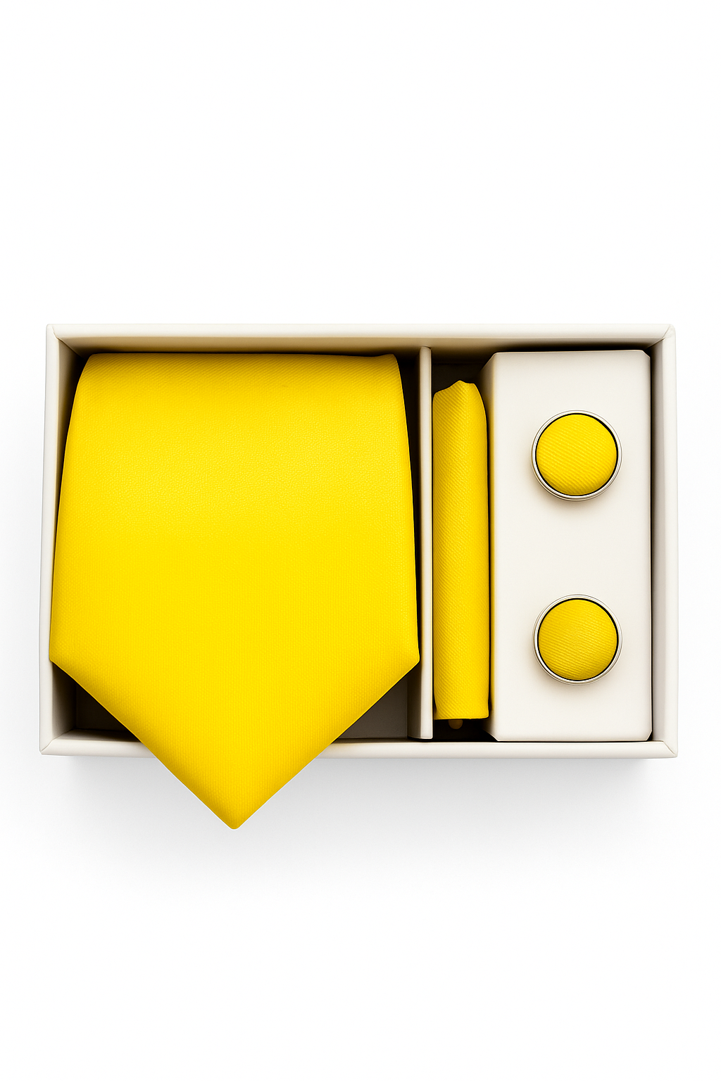 Set de corbata de tres piezas compuesto por corbata elaborada en 80% seda y 20% poliéster.