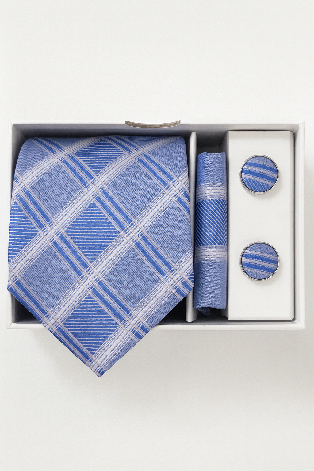 Set de corbata de cuatro piezas compuesto por corbata elaborada en 80% seda y 20% poliéster