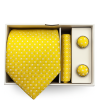Set de corbata de tres piezas compuesto por corbata elaborada en 80% seda y 20% poliéster.