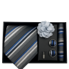 Set de corbata de cuatro piezas compuesto por corbata elaborada en 80% seda y 20% poliéster.