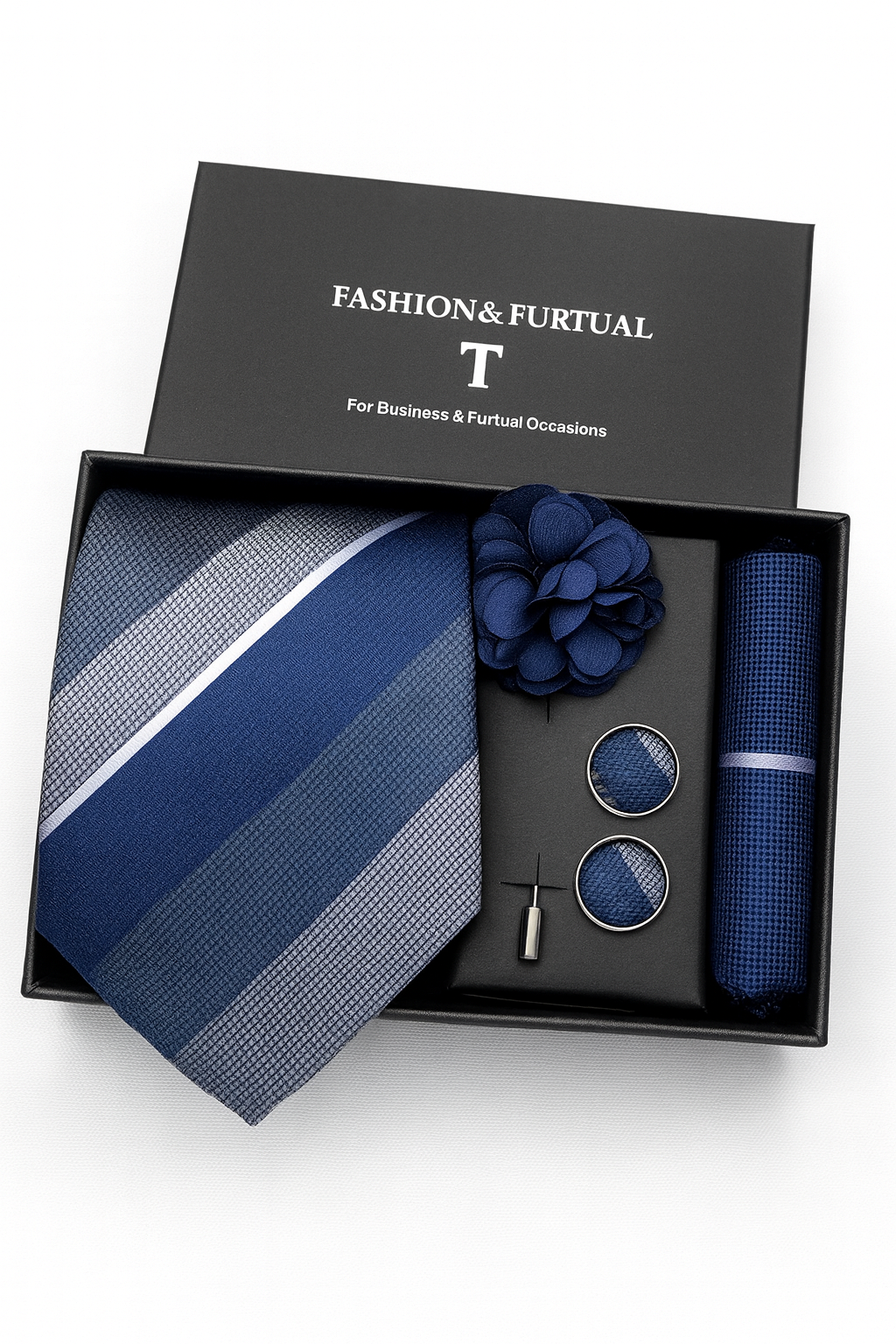 Set de corbata de cuatro piezas compuesto por corbata elaborada en 80% seda y 20% poliéster