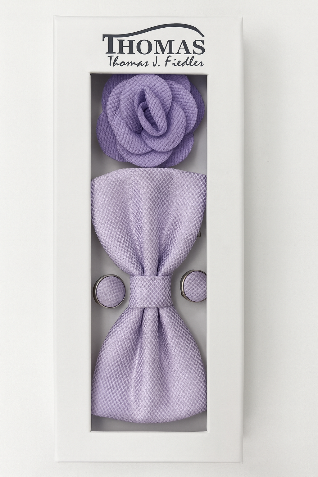 Set de corbata de tres piezas compuesto por corbata elaborada en 80% seda y 20% poliéster.