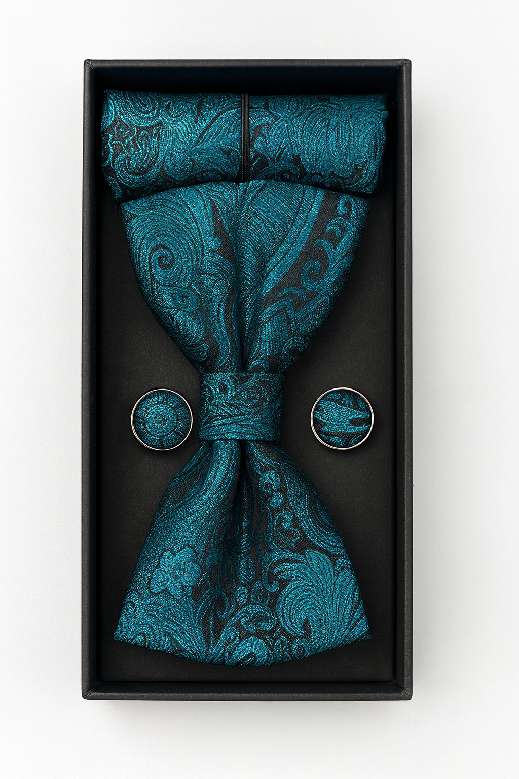 Set de corbata de cuatro piezas compuesto por corbata elaborada en 80% seda y 20% poliéster.