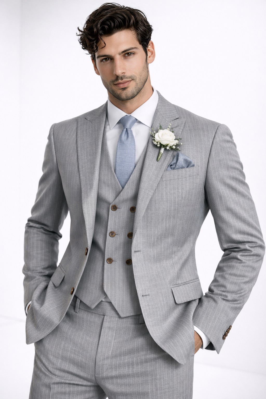 Lúcete en este ligero Traje Slim Fit de 3 Piezas, perfecto para ocasión de etiqueta, eventos formales como bodas, bautizos y graduaciones.